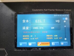 序號 樣品質量(mg) 水分(ug) 濃度(ppm)