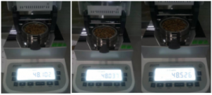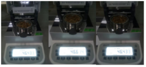 5. 重復(fù)上述步驟;進行第三次測量(93/94),顯示樣品的水分含量為614%。三次測量結(jié)果最大誤差為0.181%,表示測試結(jié)果可靠,可重復(fù)性好。