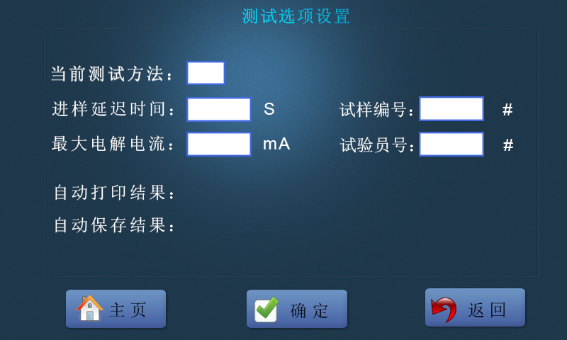 “設(shè)置”功能:用于完成對測試選項、日期時間、聲音及顯示設(shè)備、語言、通信等相