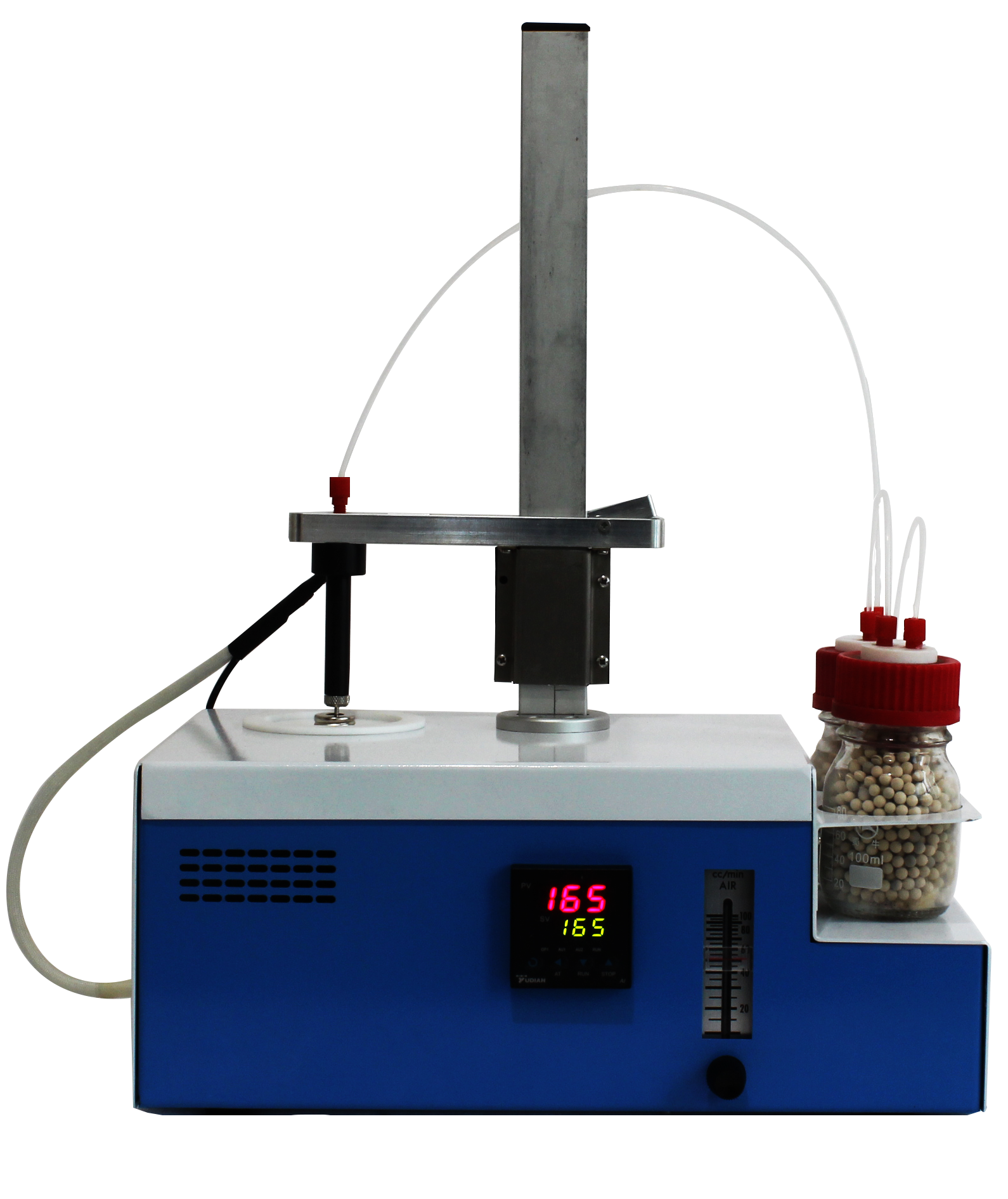4.5、氣口鏈接至儀器上方的兩個干燥瓶,并且將干燥瓶用管路相連接。